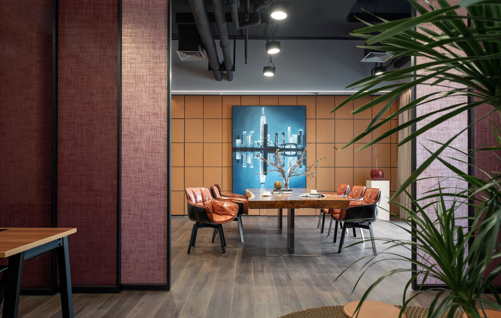 設(shè)計除了考慮到會議培訓(xùn)時的功能性需求,同時也關(guān)注了空間的藝術(shù)性表達(dá),彰顯客戶精尚不羈的美學(xué)風(fēng)范。紅蕊萌動,清新雅致,櫻桃擺件形象生動,大自然無時不刻在賦予人們關(guān)于美學(xué)的靈感啟迪,或絢爛,或無華,或凝練,或簡約,交織譜寫新的空間藝境。