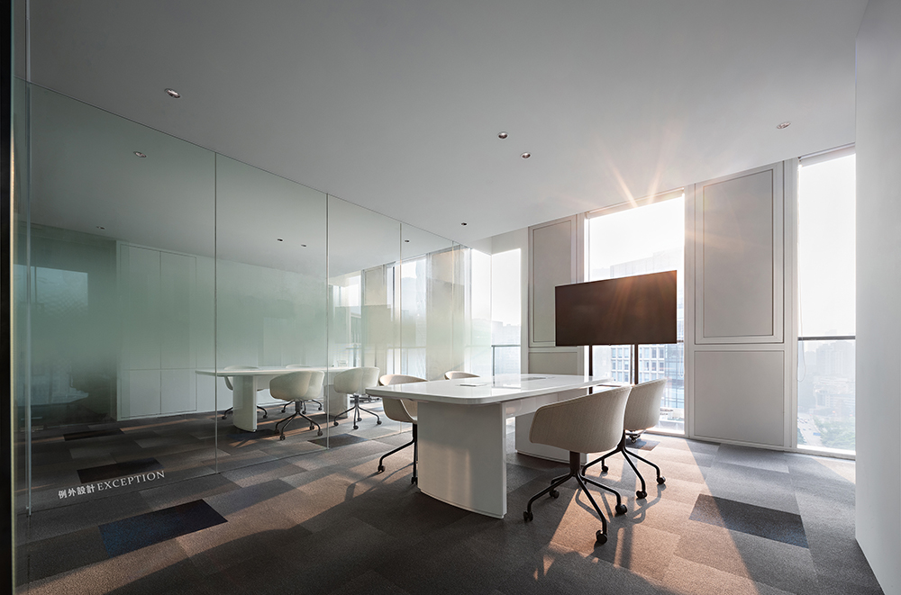 會議室采用相對克制的設(shè)計,讓渡給空間的功能性。讓會議模式始終是沉浸的、交互的,通過光線和結(jié)構(gòu)來傳遞空間情緒,保持豐富且連續(xù)的空間秩序。陽光劃破天際,明亮通敞的空間中,思緒激昂,靈感碰撞,一個新的解決方案即將脫穎而出……