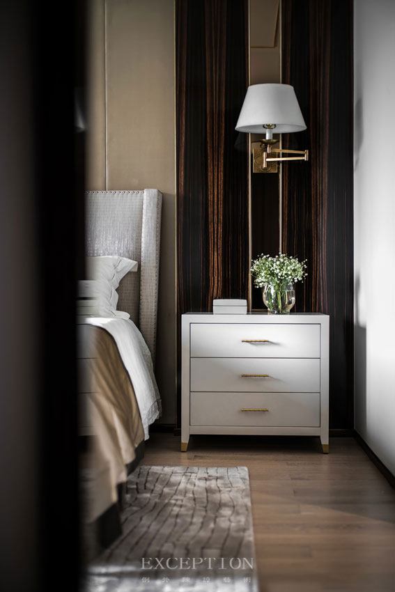 浸透了矜貴輕奢的外在因子,也容得下彼此相擁而眠的幸福小日常。臨湖而居,窗外漣漪微漾,室內(nèi)優(yōu)雅生姿,一切景語皆情語。