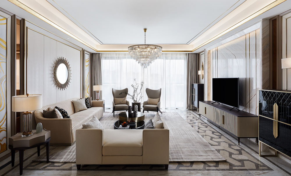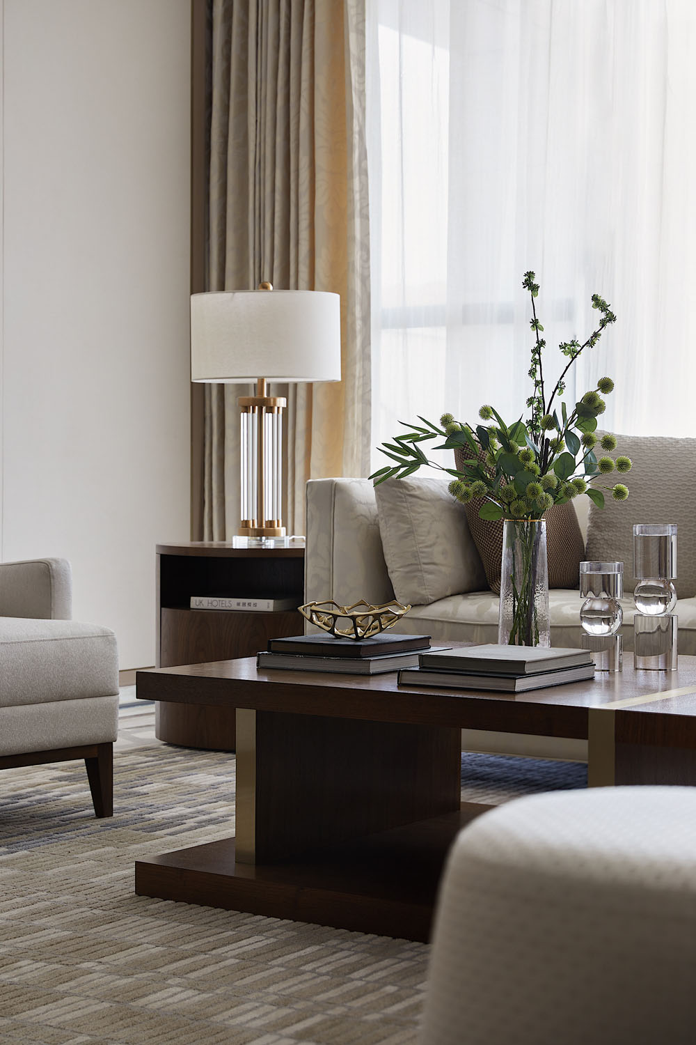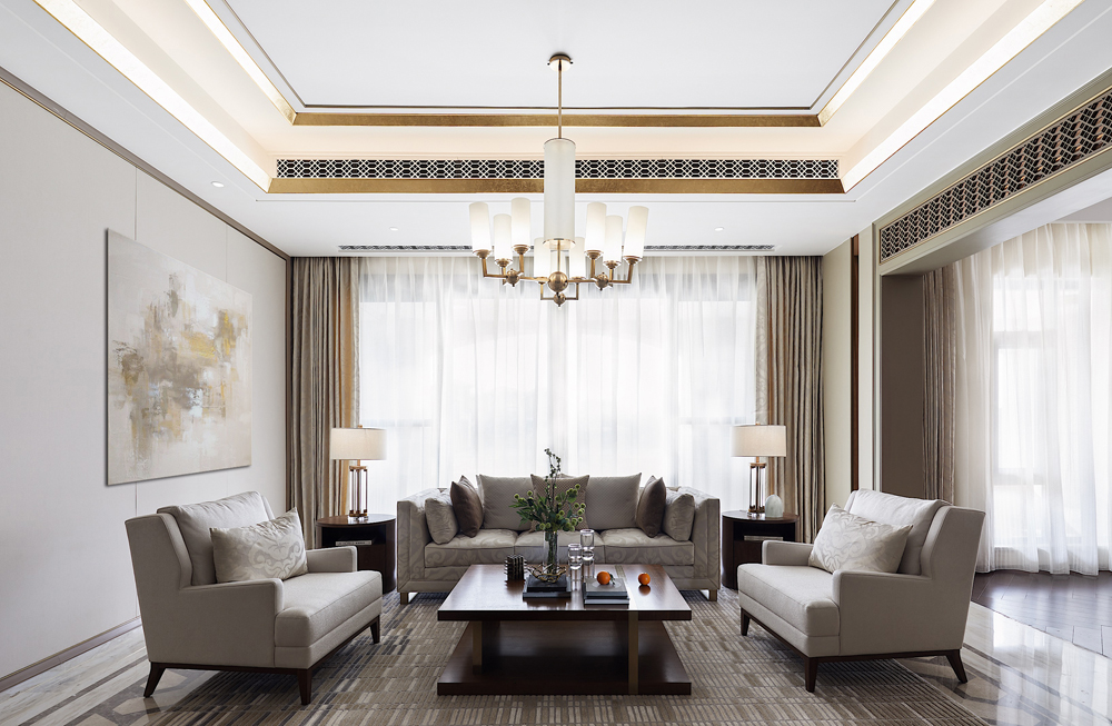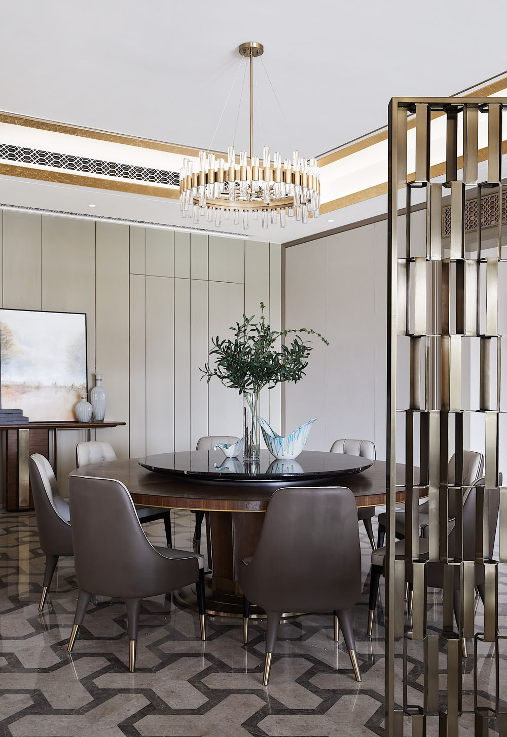 設(shè)計(jì)師鄭鴻以居者家族的凝聚力為起點(diǎn),結(jié)合地域文化抒寫(xiě)歸家的情懷。在輕奢美學(xué)與自然風(fēng)物的融合滲透中,傳遞著充滿雅趣而恒久的審美,讓空間充滿安適舒愜的韻致。