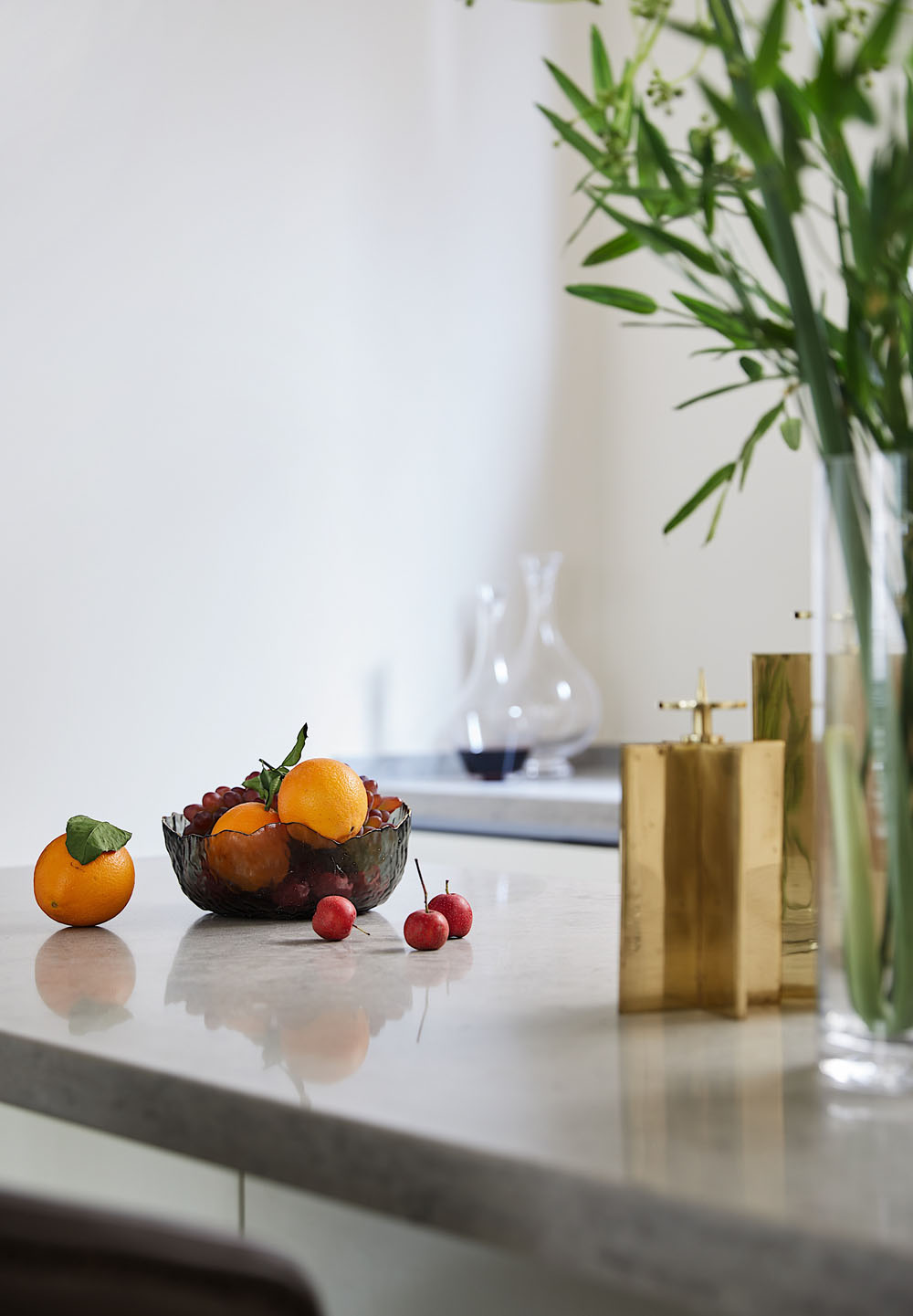 日光通過(guò)百葉窗映照在西廚島臺(tái)上,順應(yīng)季節(jié)時(shí)令,品嘗最鮮甜的果味,亦或倚靠吧臺(tái),來(lái)一曲舒緩慵懶的藍(lán)調(diào),和愛(ài)人小酌片刻,都是精致的存在。
