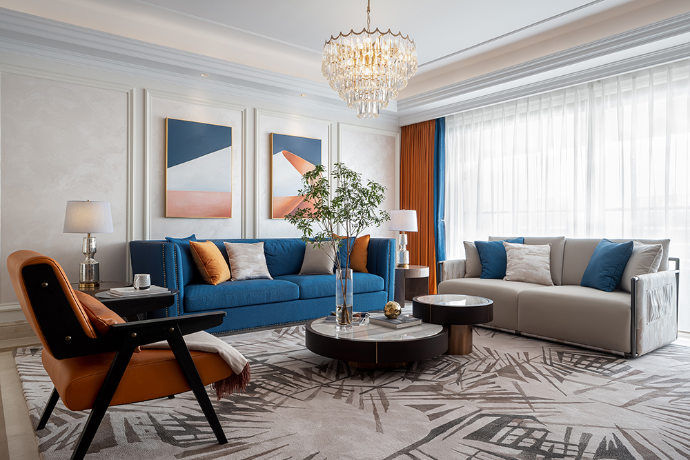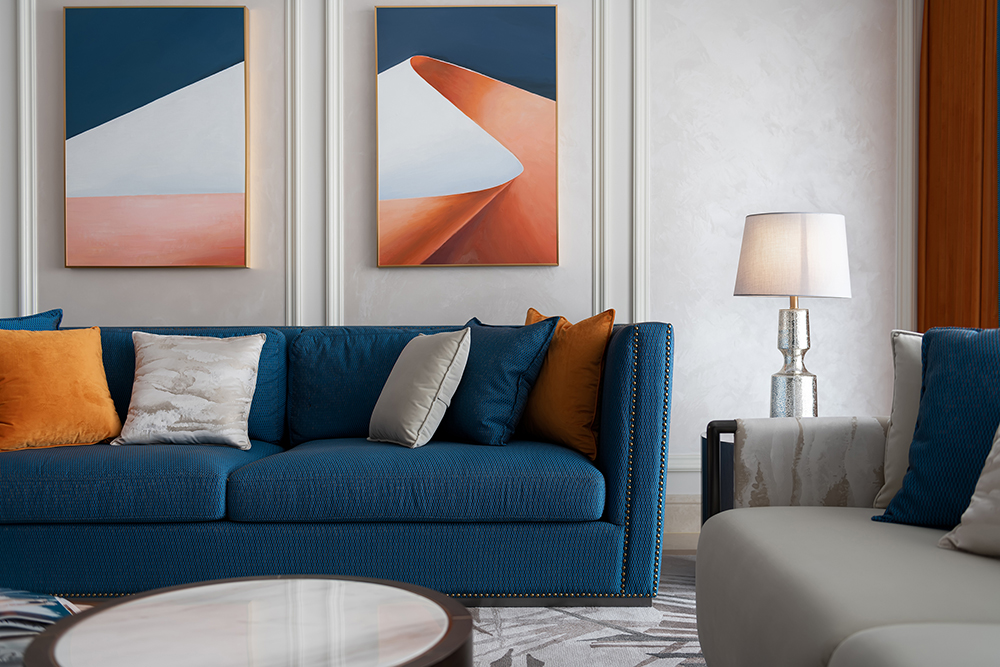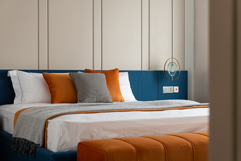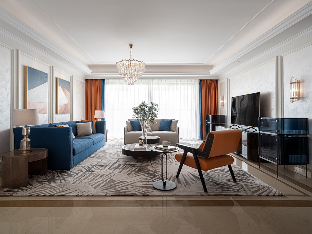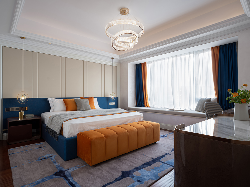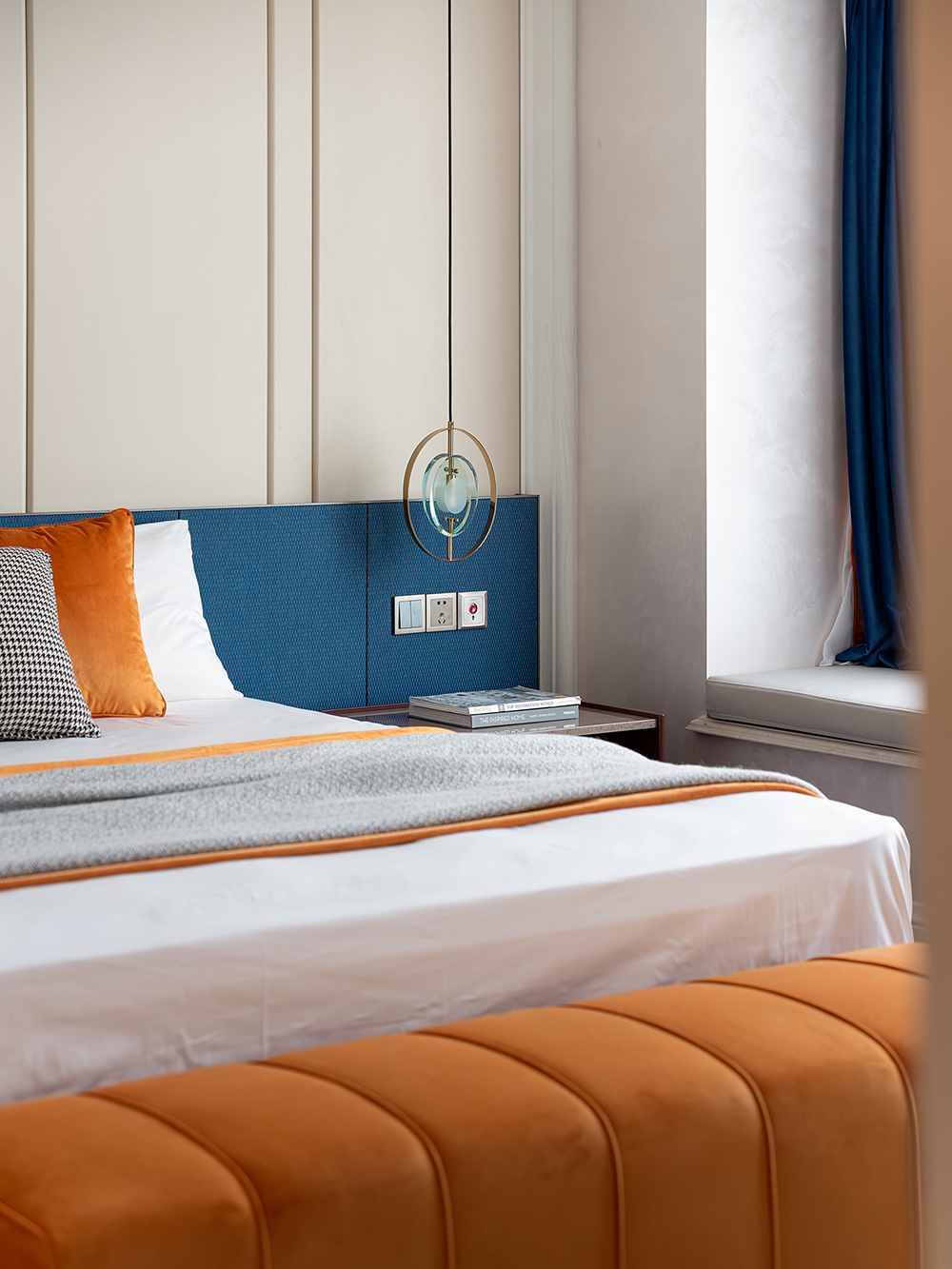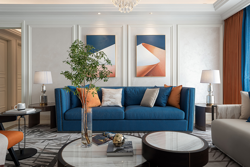 我們嘗試以鮮明熱烈的色彩與臻選的材質碰撞出全新的空間調性,寶藍的華美邂逅明快的落日橙,輕奢個性、溫暖雅致,讓每一個場景生動而鮮活,仿若色彩研想室,讓身處其中的人都能感受到色彩所傳遞的精神與力量。