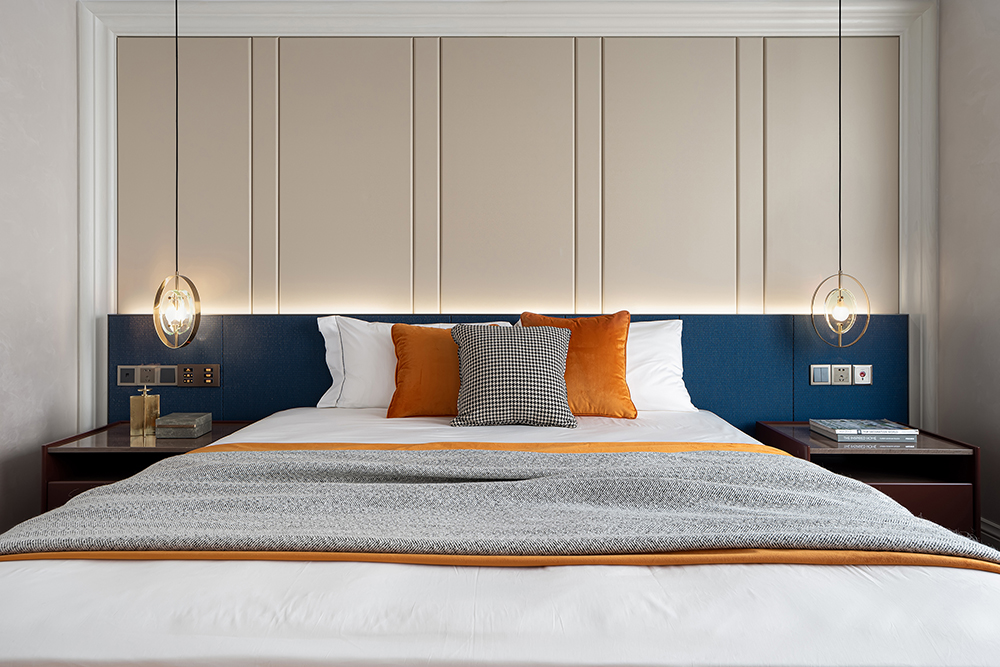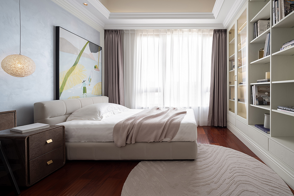 奢華最核心的要素不是淺表上的耀眼奪目,而是觸及生活深處的舒適。床品的幾何元素與輕柔綿軟、觸手可及的質感使空間更加精尚,最美的東西都是將刻意隱藏,真正關注到人與空間的相互平衡,直白地表露最舒適的狀態(tài)。