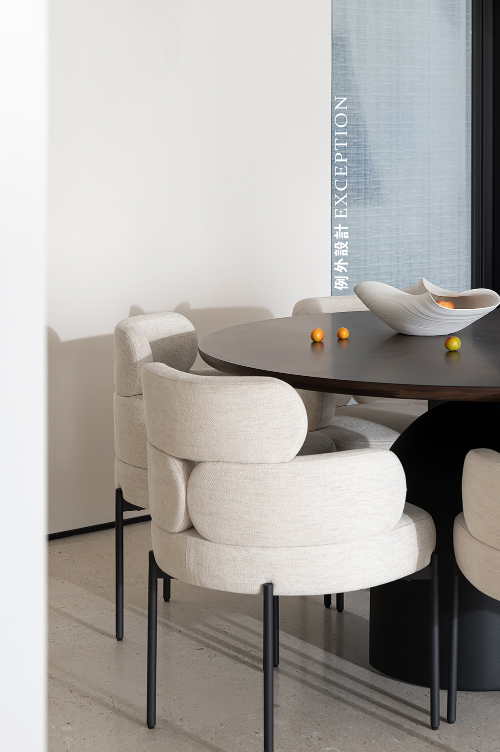 餐廳空間整體刪繁就簡,單色寫意裝飾畫縹緲靈動,精巧比例打造如同水墨般的藝術(shù)氣息。黑與白的默契比例,空間是純粹、靜謐而簡雅的,進(jìn)入空間人瞬間獲得精神上的享受。設(shè)計讓渡所有的焦點(diǎn)成就用餐的愉悅光景,我們希望去感受材質(zhì)的真實情緒,讓三餐四季的日常充滿詩意和美好。