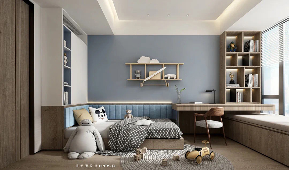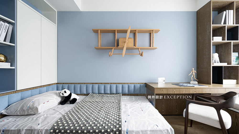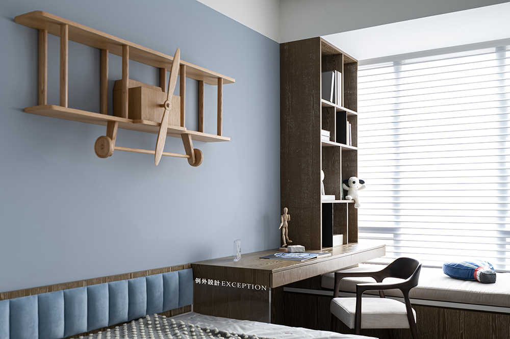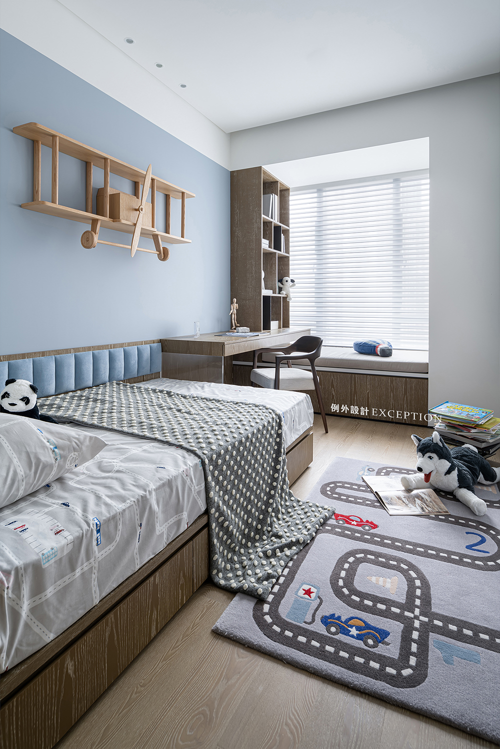 巴烏斯托夫斯基說過:只有當(dāng)我們成為大人的時候,我們才開始懂得童年的全部魅力。在兒童房的設(shè)計中,充分考慮了孩子的成長周期,空間布設(shè)靈活可變。木飛機(jī)、卡通小擺件、童話繪本,每一個細(xì)節(jié)都是在完滿孩子的小小世界。
