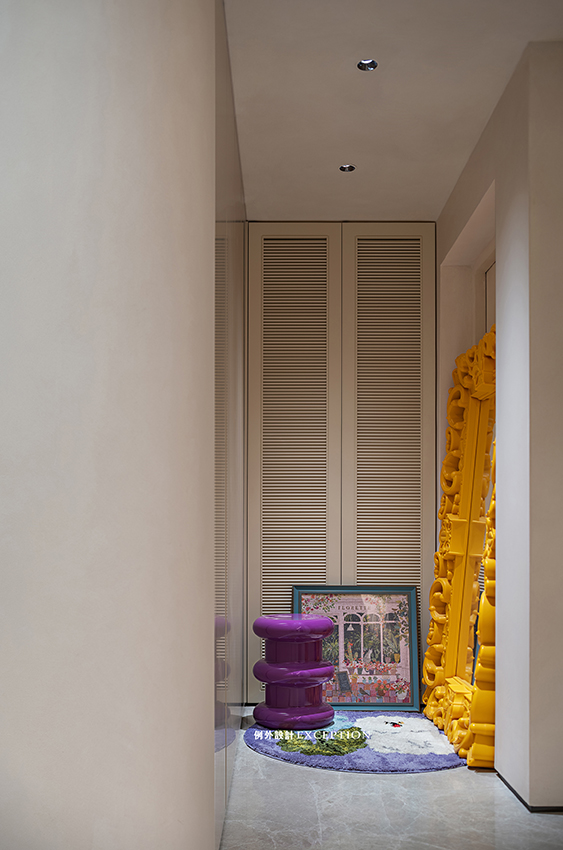 一副拼圖、一面ins風的鏡子,一個換鞋凳和一塊小圓毯,形成了出電梯右手邊的第一視感:活潑時尚。好奇這個家里面會有哪些更讓人驚喜的東西。