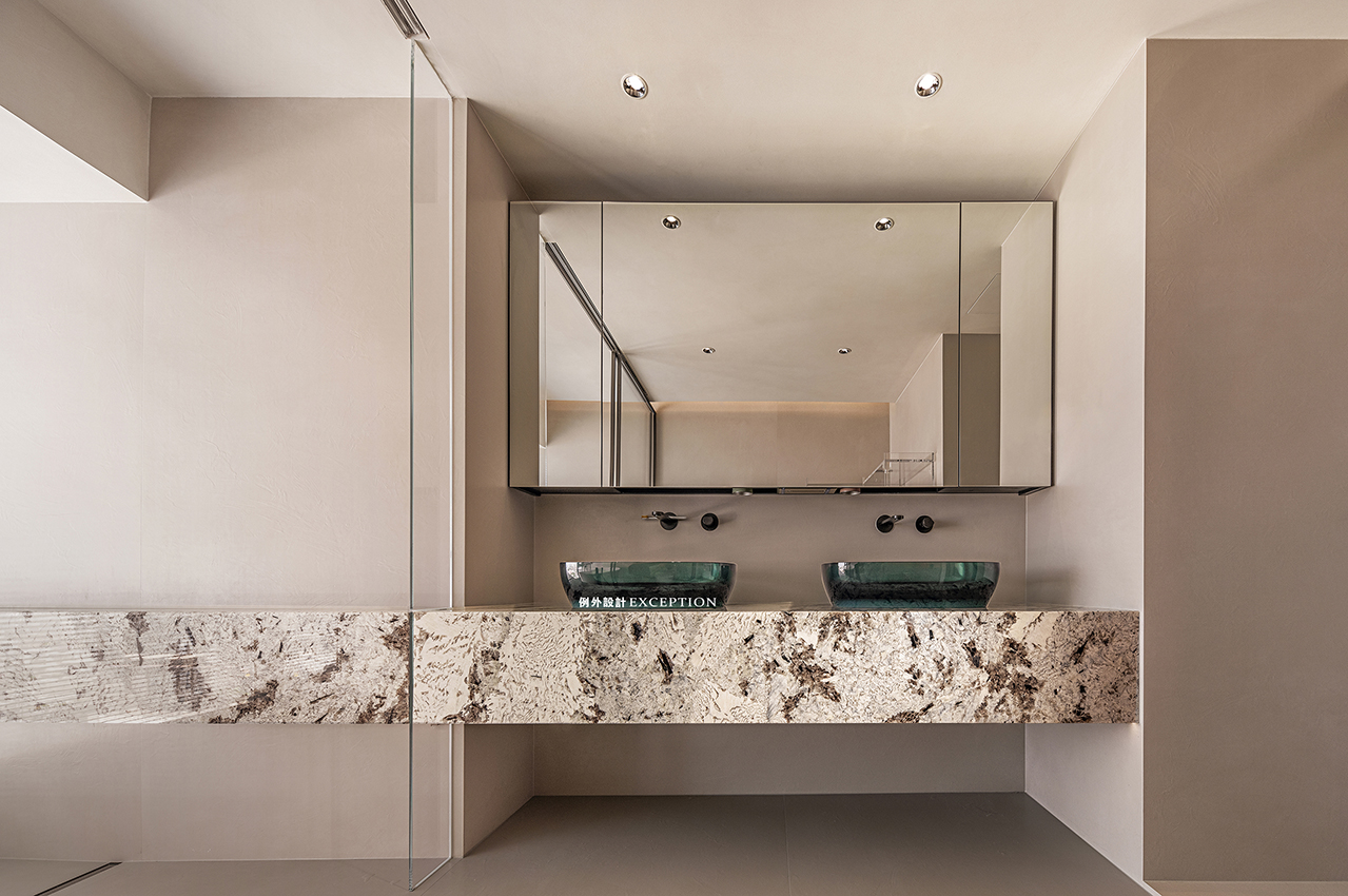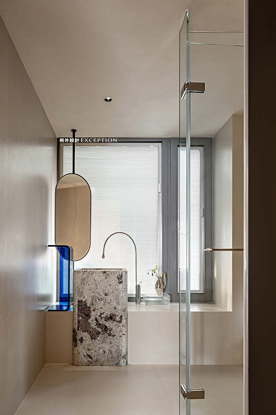 主衛(wèi)清爽簡潔素樸,沒有過多的裝飾,全景落地窗賦予空間良好的通透感,在張弛有度的居住哲學中,保留對生活最純粹的感受和向往。