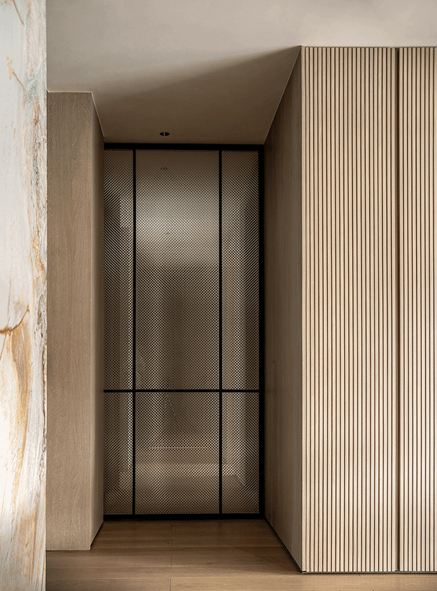 主衛(wèi)與衣帽間形成合力,消解了空間的單一性,借用;一點(diǎn)衣柜的空間讓主衛(wèi)空間更大,實(shí)現(xiàn)了三分離的功能劃分,也為家的生長(zhǎng)提供了更多的思路。木色與米灰色營(yíng)造出溫馨、明凈的輕盈感,窗外自然光線透過藝術(shù)玻璃漫射開來,私密的起居時(shí)光在輕柔的光線下變得舒心、儀式感滿滿。