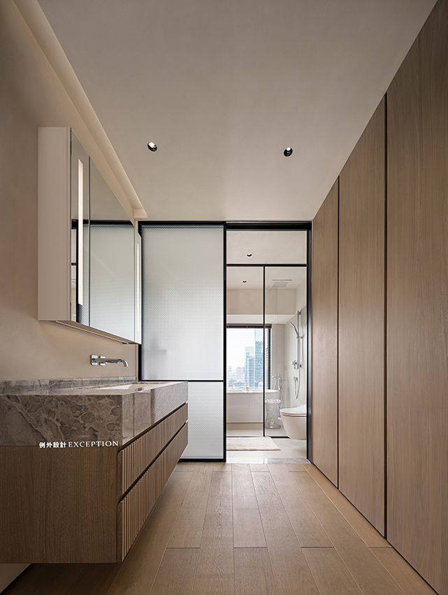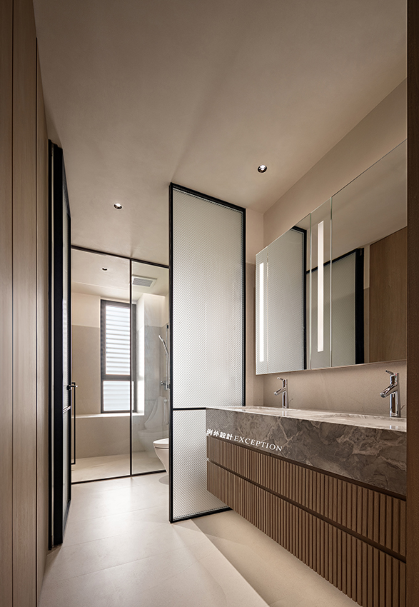 除了必備的衛(wèi)浴功能,設(shè)計(jì)還貼心地安排了一排收納柜,平時(shí)的衛(wèi)浴囤貨終于可以以更整潔的姿態(tài)待在空間里。