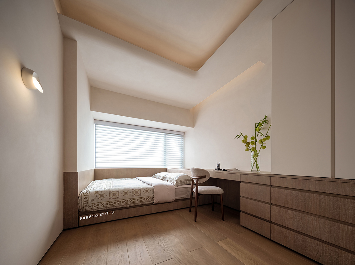 不同的空間根據(jù)居者的性格習(xí)慣而具備了個(gè)性化的空間屬性,長(zhǎng)輩房一改沉穩(wěn)低調(diào)的視覺感知,而用包容的大地色賦予無限的關(guān)愛與暖意,靈活的軟飾部品與強(qiáng)大的收納體系,在日常點(diǎn)滴中緩緩滲透,深入人心。