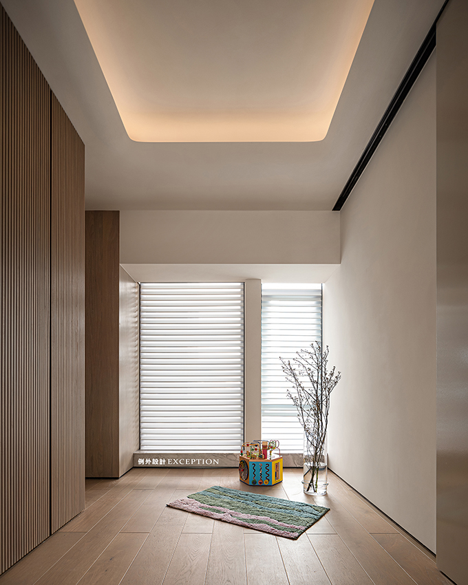 多功能房是孩子們的另一處樂園,推拉門也暗藏魔法,因?yàn)樗€是一塊磁吸白板墻,包容孩子們天馬行空的靈感,小小的設(shè)計(jì)也能帶來大大的驚喜。