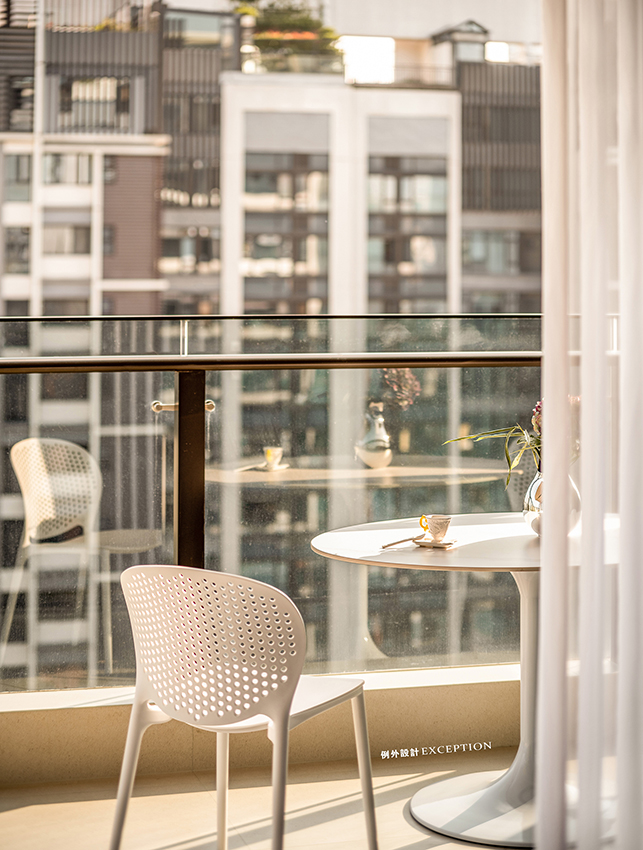 從陽臺(tái)可以眺望深圳灣的碧水藍(lán)天,這里配備了悠閑下午茶的桌椅,也安排了花草綠植養(yǎng)護(hù)的水池。無論外界紛繁復(fù)雜,這里始終都可以是工作疲憊后的結(jié)束,也可以是清晨活力滿滿的開始。