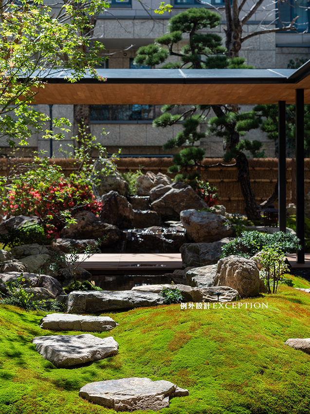 推開庭院門扉,中式山水的雅致?lián)涿娑鴣?,水聚天心的格局賦予了場域源源不斷的能量。綠意蔥蘢,花枝清麗,池影蕩漾,閑庭信步其間,心緒瞬間得到寧靜。
