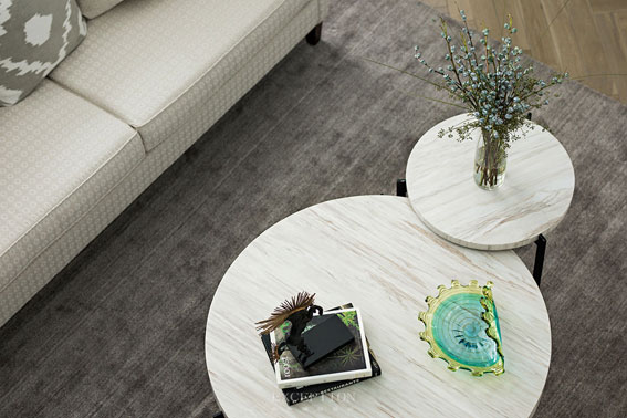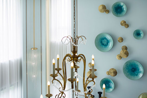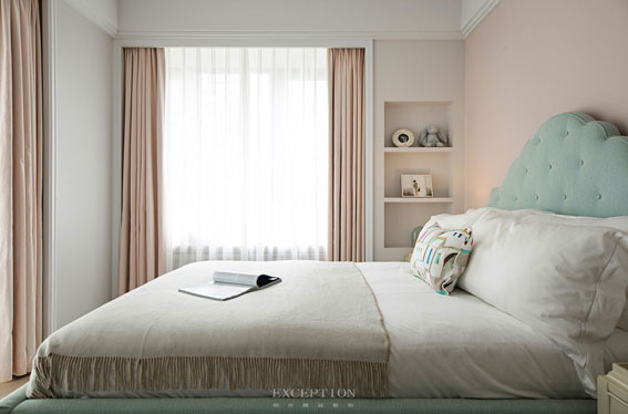客廳有一種撲面而來的女性氣質(zhì),除了溫柔藍色帶來的第一視感,還有面料所蘊含的神奇魔力:精細規(guī)則的紋路、面包般的外形與松軟觸感。