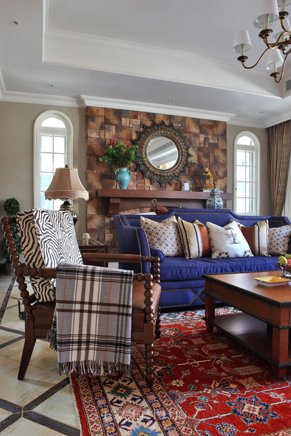 大面積落地窗,開放的格局布置讓客廳區(qū)顯得明亮寬敞,柔和的自然光線讓一切家私材質(zhì)袒露出原本的肌理和自然的色澤,不正迎合了美式生活方式的自由隨意、天然舒適么。