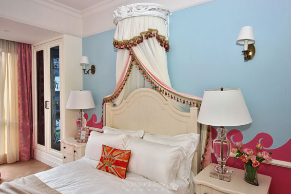 讓開朗可愛的女兒在這樣一個(gè)粉彩色鋪就的房間成長,想來就是一件很美妙的事,慣常的粉藍(lán)與粉紅搭配,卻因細(xì)心繪制的海浪圖案萌生出些許的浪漫活潑,此時(shí)家私、床品色彩的選擇上便以白色為主,避免色彩的堆疊繁復(fù),給孩子一個(gè)優(yōu)雅純凈的空間。