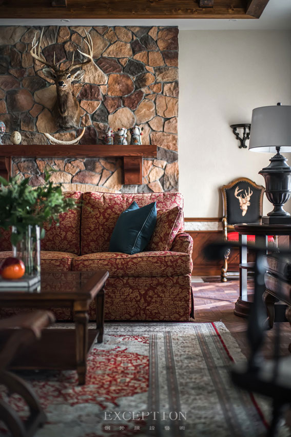 大到毛石文化墻、波斯地毯,小到精致的鹿元素裝飾、俄羅斯娃娃,所有元素組合在一起,精致、自然、祥和,成為這個家的主題情感。