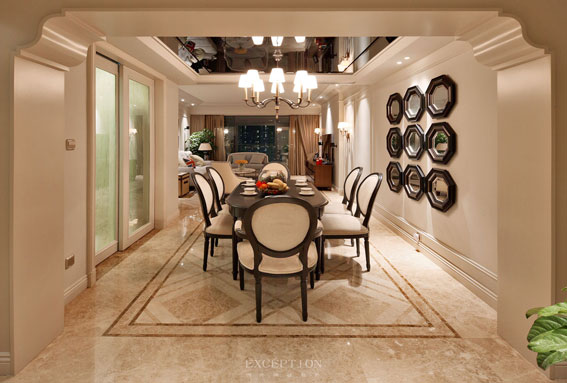 從簡約的拱門造型里,洞悉二人世界的溫馨:組合掛鏡內(nèi)外,充滿了琴瑟和鳴的美好,有家常小菜的樂趣,也有紅酒淺酌的浪漫。