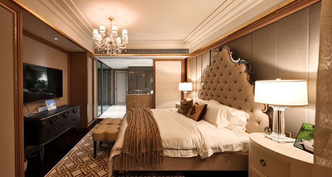 華麗的水晶燈,一如中世紀(jì)貴婦的耳墜,又形同夜空中的繁星,抱枕而臥,恬謐午夜,漫風(fēng)徐來,此時此刻,品嘗自然給予的溫柔熏陶。