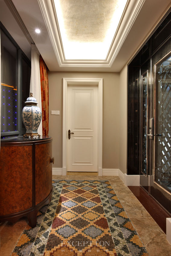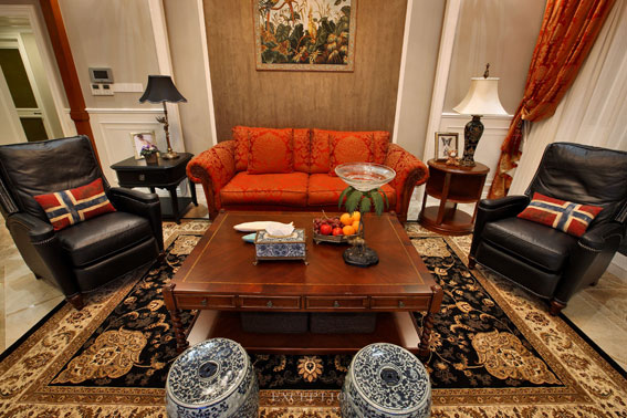不知道別人是怎么定義愛情的,在我看來,愛情是人世間最大的奇跡和最華麗的冒險——最初互不相識的兩個陌生人,冥冥中命運的齒輪不期卻注定緊緊咬合在一起,歲月流轉(zhuǎn),某個夕陽下的柳樹邊,某個街頭的轉(zhuǎn)角處,我們相遇、相識、相知、相守,相依終老,或甜蜜或憂愁,一路上塵緣羈絆,一步一步走過有你有我的歲月,卻不覺成就了“執(zhí)子之手,與子偕老”的美麗童話。誠如本案業(yè)主的愛情物語,先生偏愛濃郁熱烈的美式風(fēng)情,而太太執(zhí)著清新內(nèi)斂的歐式風(fēng)格,不可調(diào)和的審美視角,唯有愛與設(shè)計才能將其牽引向平衡的兩端。