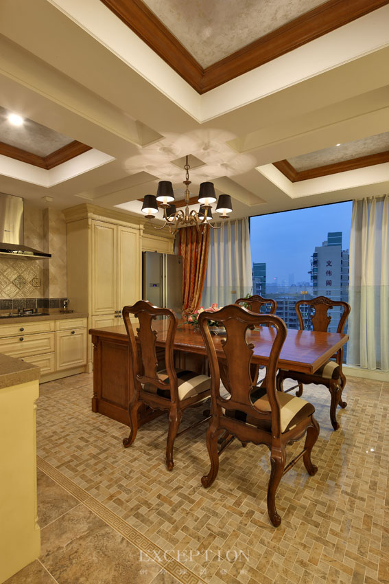 咖色實木銳化了十字橫梁,在傳承簡歐精髓的同時改善了原機構(gòu)的不足;島臺與餐桌自成一系,交織著烹飪與美味的幸福。