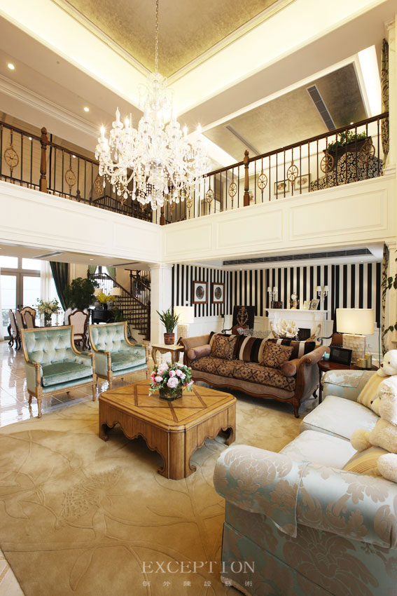客廳的設(shè)計體現(xiàn)出整棟房子的簡歐風(fēng)格,從上往下,硬裝都是以白色為主調(diào),鐵藝的護(hù)欄上隔三岔五的裝飾著橢圓的花瓣,簡約中襯出優(yōu)雅。