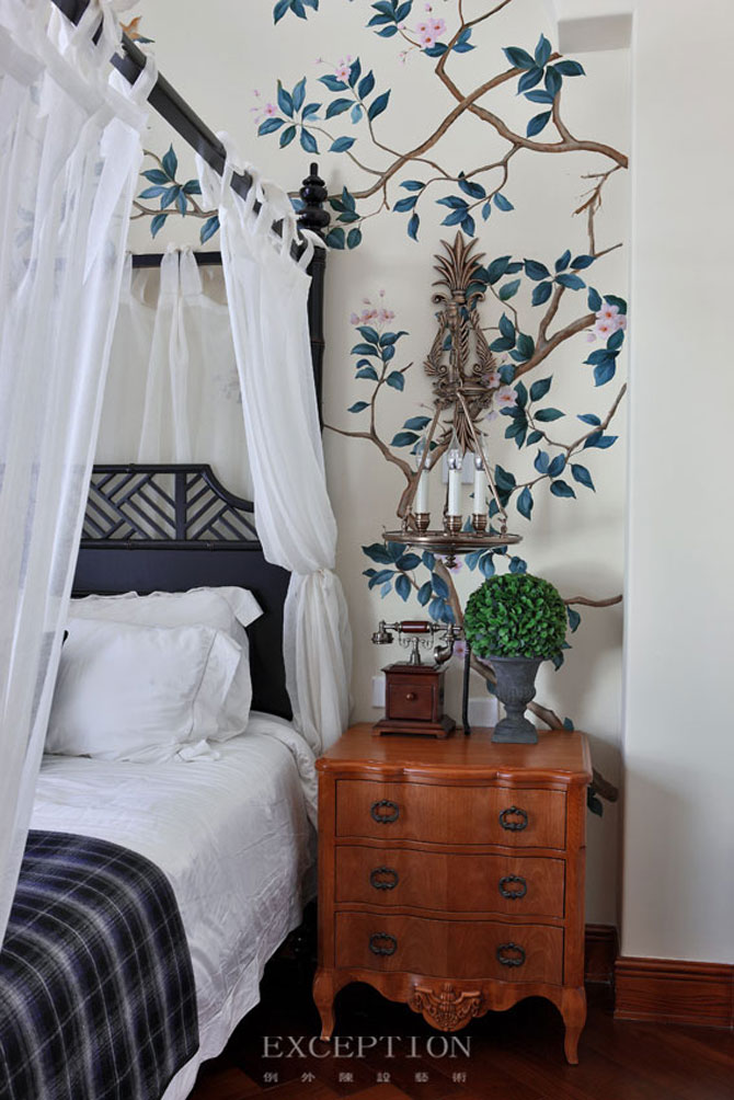 本案主打美式鄉(xiāng)村風(fēng)格,格調(diào)清婉愜意,寧?kù)o悠然,匠心獨(dú)運(yùn)的設(shè)計(jì),致力于打造一處真正的都市田園。無(wú)論是風(fēng)采異域的壁爐,抑或意趣盎然的手繪壁畫,硬裝設(shè)計(jì)很好的營(yíng)造出雅致休閑的家庭氛圍。而軟裝處,則突破美式風(fēng)格固有的印花與條紋,綴以雋永細(xì)膩的法式雕花,兩種風(fēng)格的巧妙融合,如同品一杯香茗,考究的田園茶杯搭配神奇的東方樹葉,和諧處收獲的是一顆平和的內(nèi)心,而那份歸于自然的生活愿景,則在悠然中得到了貼切而完美的詮釋。
