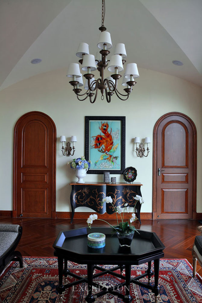 八角茶幾,素凈拱門,去繁從簡(jiǎn)的對(duì)稱,洋溢著美式風(fēng)格的典雅大方,更彰顯主人超凡脫俗的品味。