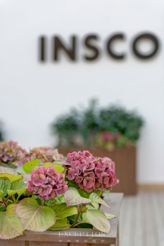 綠意深處,白墻上的字母浸潤(rùn)著低飽和度的咖啡色,依據(jù)特有的豐富內(nèi)涵進(jìn)行奇妙的組合,便是Insco所帶來的柔和視覺體驗(yàn)。