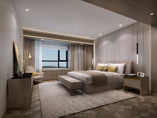 空間四周的圓形造型再一次體現(xiàn)出東方文化的包容性,在規(guī)律變換的幾何地板的韻律里,空間立體感凸顯。