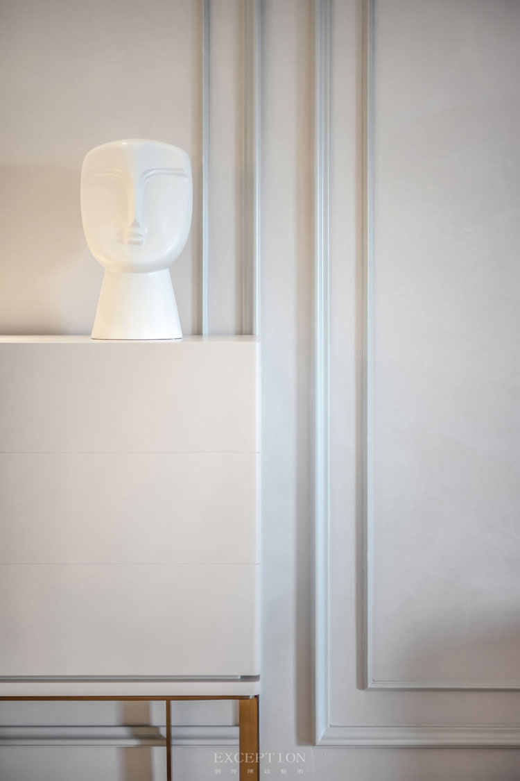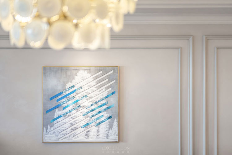 沒有繁多的裝飾,更顯空間的通暢大氣。當(dāng)代藝術(shù)被融入到掛畫、擺飾、家具的每一處細(xì)節(jié)里,經(jīng)過反復(fù)地思考,重組、搭配,構(gòu)設(shè)出強(qiáng)烈的視覺符號(hào)來感應(yīng)空間的安靜純粹的生活氣質(zhì)。