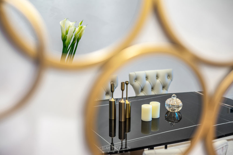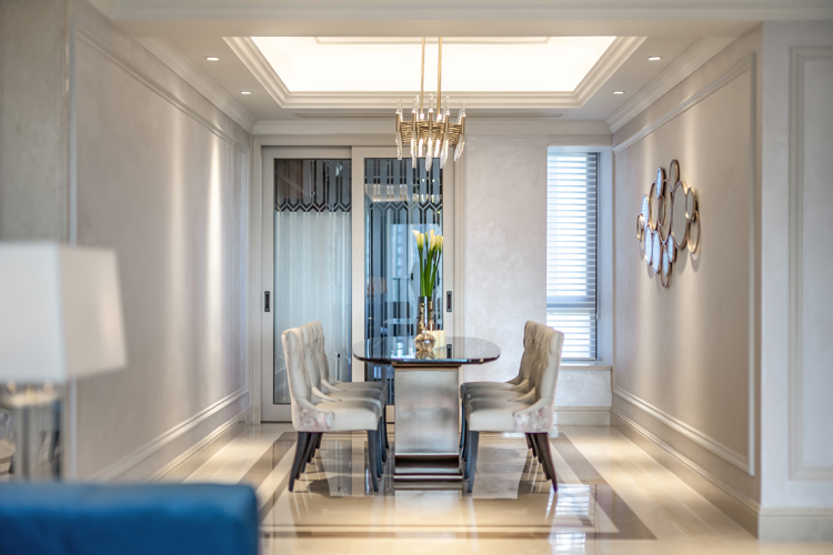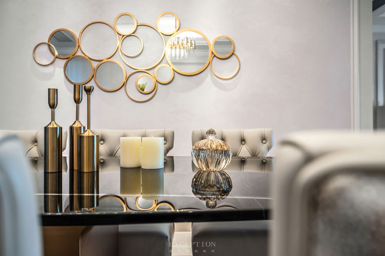 恰到好處的金屬元素引導(dǎo)出時(shí)尚雅奢的韻味,水晶燈灑下的星輝在餐廳一隅悄然綻放光華。清麗淡雅的花束陪伴著和樂溫馨的就餐體驗(yàn)??臻g的陳設(shè)與所散發(fā)的氣質(zhì)與居者是相互影響的關(guān)系,居者的品位賦予物以靈魂,而物品反過來也會(huì)影響人的心情,甚至是幫助他們找尋到自己真正所追求和熱愛的東西。