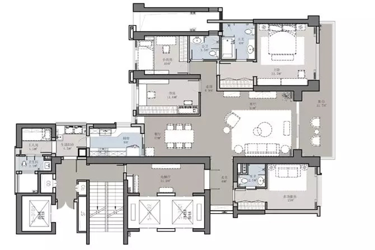 業(yè)主毫不掩飾對(duì)家私拉扣工藝的喜愛,規(guī)則的走線、細(xì)密的紋理、親膚的觸感,面包甜點(diǎn)般柔軟細(xì)膩。美好的設(shè)計(jì)從來不局限于亮麗的外表,更應(yīng)該落地于舒適自在的空間享受。