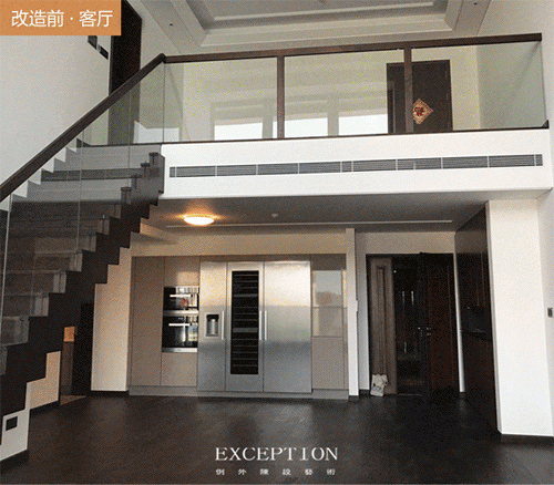 3、改造后樓梯一側(cè)以香檳金屏風(fēng)營造虛實結(jié)合,隔而未隱的東方意境。