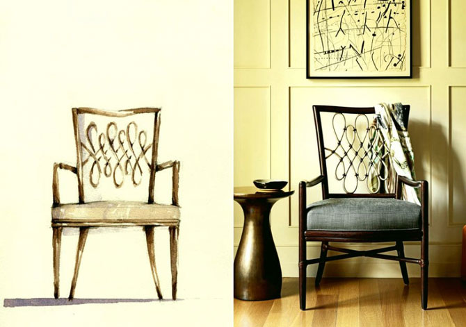 這款椅子的靈感來源于水彩,終成為baker家具里的一員。