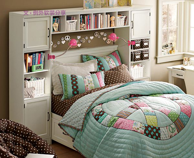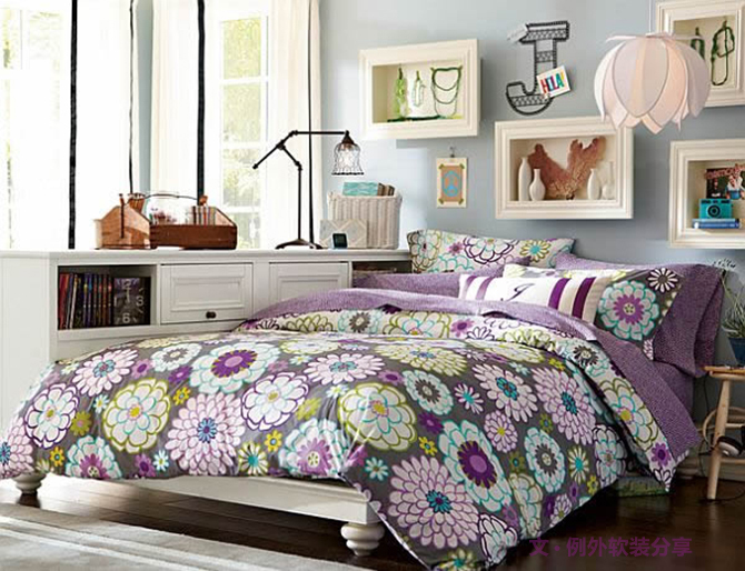 種:灰色,白色,藍(lán)色的搭配看起來色調(diào)簡單清爽,有一點(diǎn)酷酷的感覺,比較適合運(yùn)動型女孩;第二種:咖色,白色,粉色的搭配看起來像草莓巧克力,給人活潑甜美的感覺,如果女兒是一個開朗活潑的姑娘這類搭配她一定會喜歡;第三種:白色,粉藍(lán)色,咖色,粉紅色,顏色搭配繽紛豐富,粉藍(lán)文靜,粉紅俏皮,靠包與沙發(fā)上的原點(diǎn)裝飾顯得十分可愛討喜;第四種:咖色,鵝黃為主體,加入花色圖案元素,這一方案頓時(shí)讓人覺得溫暖明朗,墻繪與裝飾相結(jié)合的手法別有創(chuàng)意,值得借鑒;第五種:紫色,白色同樣加入花色圖案,由于以紫色為主體色調(diào)整個方案顯得浪漫許多,相信不少女孩都會很喜歡。