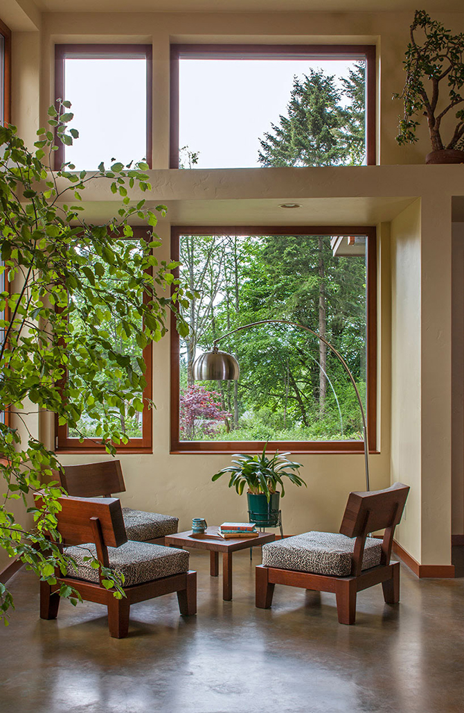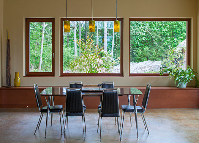 這種超節(jié)能型住宅依賴于高效的保溫隔熱材料,房屋的氣密性,高超的施工水平。具有thermoplus包線的Zola門窗,擁有三層R-11玻璃以及擁有一項德國專利的purenit技術(shù)都被應用到了此房屋的建造中。自然光線通過窗戶和通向戶外景觀的門在一天的各個時候從各個角度都能照進客廳和餐廳,可以盡情享受沐浴陽光的美好。