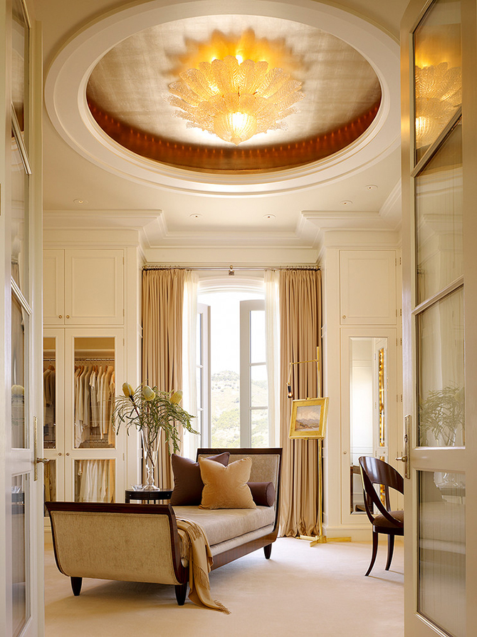 當(dāng)然,這里還要介紹另外一類衣帽間--獨立式,它可是衣帽間里的白富美,獨立式衣帽間對住宅面積要求較高,單獨利用一個房間作為衣帽間。其特點是:防塵好,儲存空間完整,衣柜設(shè)計以雙排式、“U”字形空間利用率為高,這種獨立間要留足充裕的活動空間,好能再設(shè)一面鏡子以便操作、試衣。房間內(nèi)照明要充足,必要時還需補(bǔ)充照明,以備翻找之需。