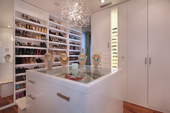分類明晰的三個空間,銀色的首飾收納柜帶出濃濃的名媛氣質(zhì),悉心裝扮的生活就是如此醉人。