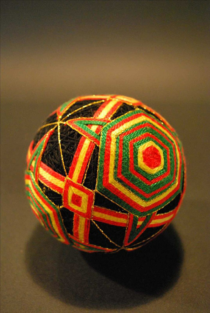 起初,鞠造型普通,但是在日本經過幾個世紀的傳承,發(fā)展為一種民間手工藝術,成為了一種日本傳統(tǒng)玩具,喚作手鞠球(日語:てまり、手まり)、又稱手球。它使用制作和服剩余的邊角料,填充成球狀,然后用多彩絲線纏繞成幾何圖形,形態(tài)略大于壘球,略小于手球。