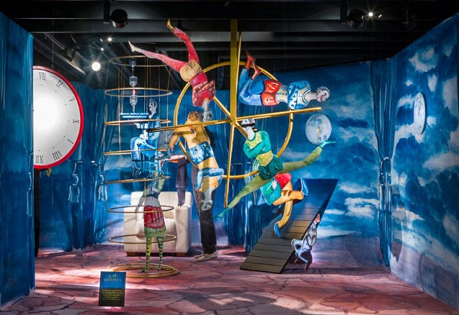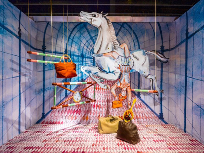 櫥窗藝術(shù)設(shè)計(jì)無(wú)疑是一項(xiàng)了不起工作,需要充分發(fā)揮想象力把那個(gè)小小的空間充滿美麗的情節(jié),給觀眾以強(qiáng)烈的藝術(shù)感染力,達(dá)到刺激消費(fèi)者感官的目的。這些具生命力,精致及優(yōu)雅的展示道具,傳遞著與愛馬仕同樣的豐富想象世界,邀請(qǐng)參觀者來(lái)發(fā)現(xiàn)以及再發(fā)現(xiàn)愛馬仕卓越的產(chǎn)品。