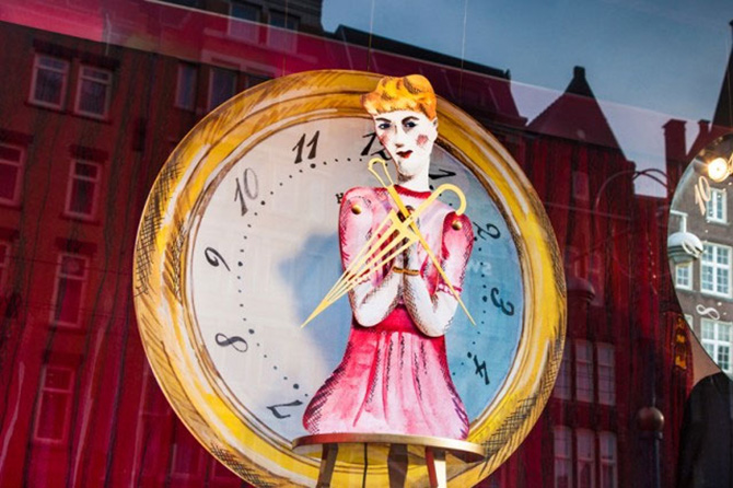 一直秉承著超凡卓越、極至絢爛的設(shè)計(jì)理念的愛馬仕,造就優(yōu)雅之極的傳統(tǒng)典范。其櫥窗設(shè)計(jì)也帶給人們這樣的感覺。許多國(guó)際知名設(shè)計(jì)師都曾受邀為愛馬仕設(shè)計(jì)櫥窗。而你現(xiàn)在所見就是其在阿姆斯特丹的百貨 De bijenkorf 的櫥窗設(shè)計(jì),作者是荷蘭新一代女設(shè)計(jì)師Kiki van Eijk。