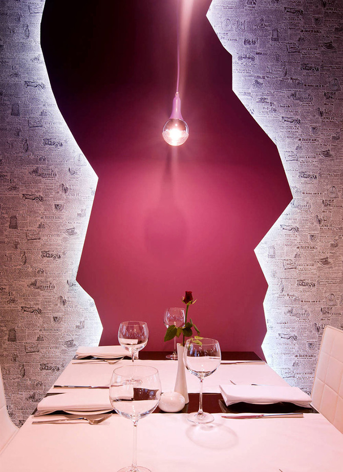 這件作品出自建筑師Wamhouse設計,設計采用的主要元素是報紙,無論是餐廳的名字,還是餐廳內(nèi)部墻壁和家具的形式。并且設計師提供的不僅僅是餐廳內(nèi)部的設計,還包括餐廳的名字,標識和尺寸等。