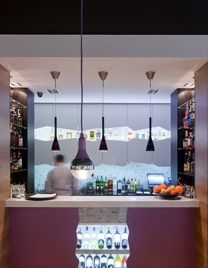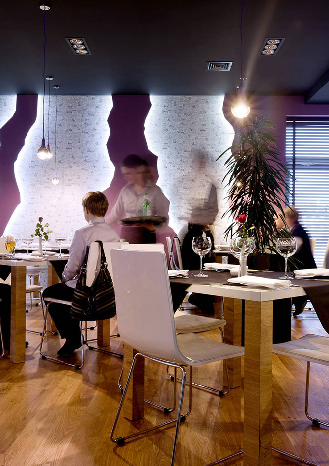 一個優(yōu)雅的就餐環(huán)境往往能為我們促進食欲,胃口大開。英國的酒店大師、心理學家羅非曾做過一項統(tǒng)計:85%的人在就餐時是沖著環(huán)境選擇的,也有63.5%的消費者在滿意就餐環(huán)境時作出超出原先預定消費額的決定。因此就餐環(huán)境對食客的影響顯而易見。在波蘭特切夫市,有這樣一間Hot Paper Restaurant,墻面裝飾紳士別致,創(chuàng)意非凡,舒適的室內(nèi)陳設配上獨特的照明方案,為食客們營造出一種溫馨的就餐氛圍。