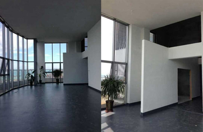 豈曰無(wú)衣,與子同袍,為了共同的夢(mèng)想我們努力協(xié)作,共同戰(zhàn)鬥,撥開(kāi)夢(mèng)想的晨光。 三、晨光裡的寧?kù)o 當(dāng)忙完後的擺場(chǎng)已是第二日清晨,一抹微醺透過(guò)窗暖暖的灑在玻璃上、屏風(fēng)上、沙發(fā)上、琺瑯畫上,點(diǎn)亮美杜莎迷夢(mèng)般的眸,為紅調(diào)蒙上薄薄的一層金粉,折射玻璃陳設(shè)的光芒,那是早上七點(diǎn)多的陽(yáng)光,充滿了希望,充滿了力量,我們?yōu)檫@道光所牽引,靜默不語(yǔ),突然一聲雀鳴,啼破默默蓄積力量的太陽(yáng),霎時(shí)萬(wàn)丈光芒,伍茲頂樓複式,輝映著太陽(yáng)的光芒慢慢綻放,凝望彼此,內(nèi)心的喜悅終於爆發(fā)——這就是我們期待了十幾年例外,堅(jiān)持了十幾年的抉擇,觸摸24小時(shí)的每一個(gè)細(xì)節(jié),十多年的辛酸幸福湧上心頭,俯瞰廣闊無(wú)垠的海景,心胸頓然開(kāi)朗,這就是例外的開(kāi)端,在美麗的地方,迎著7點(diǎn)鐘的太陽(yáng),協(xié)領(lǐng)著夢(mèng)想奔向遠(yuǎn)方。