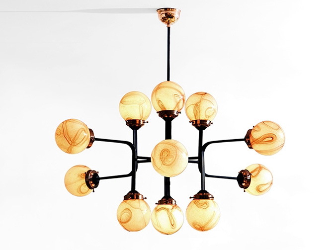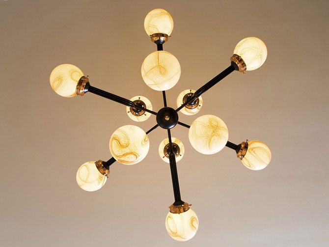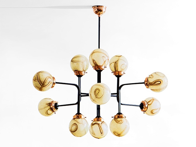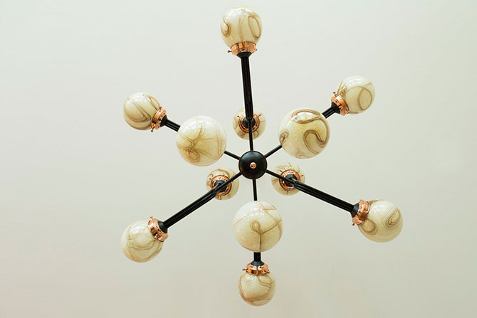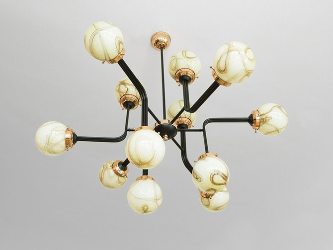 Ziron尺寸寬120厘米,高100厘米,玻璃穹頂半徑16厘米。設(shè)計師強(qiáng)調(diào)Ziron的玻璃燈泡來自純手工吹制工藝,燈罩上獨特的花紋就得益于此,如青煙般周身繚繞,在柔和的光線背景下幻化出一種年代感,讓人不由自主感到溫馨沉靜,就像收藏多年的古董,這也是設(shè)計師極力呈現(xiàn)的效果。