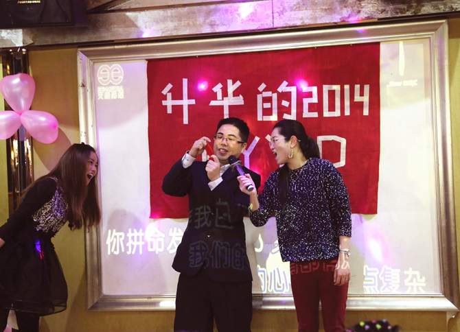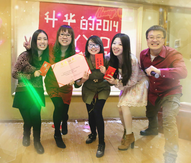 傳杯弄盞之際,借著清酒干紅,大家一起回顧2013的點滴,暢談工作的種種:攜手共進的這一年里,我們夜以繼日的工作,同舟共濟、互幫互助,克服了一個個難關(guān),創(chuàng)造了一個又一個的新作品,公司的業(yè)績上升了一個全新高度,每位同事的進步和提升為且豐收的2013年的畫上了圓滿的句點,并為魅力的2014拋錨起航。