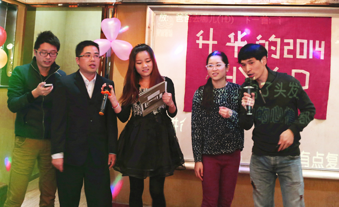 設(shè)計部門的零距離魔術(shù)秀,將電視上的神奇魔術(shù)搬到現(xiàn)實中,大變紙錢、撲克秀、猜硬幣、空手變手絹……令在座的諸位嘖嘖稱贊;大家對公司的深的感謝及祝福,則融在一首《老大去哪兒》,員工填詞,老大領(lǐng)唱;風雨拼搏,一路相隨,老大去哪兒?協(xié)領(lǐng)我們奮力前進。