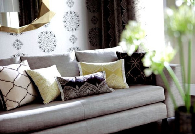 簡單的黑白背景下,不妨加入一點新意,亮眼的黃、玫紫色花朵,小范圍的點綴收到不凡的效果。