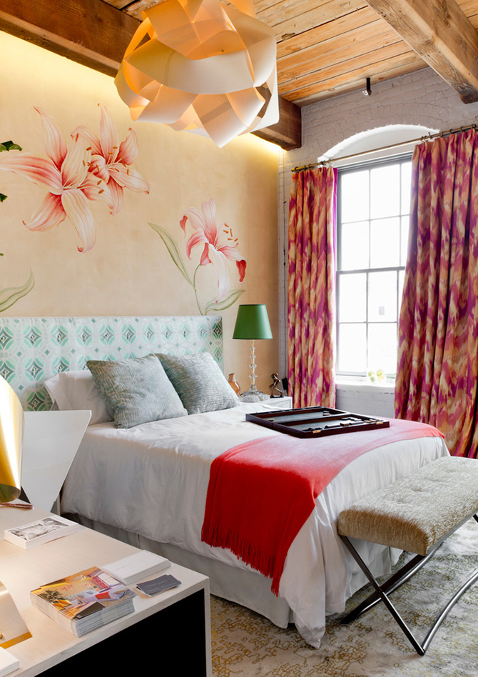 生命的長度有限,所以只有經(jīng)過的一切才是無可動搖的顯示。當你疾步前行時,不妨偶爾暫停步伐,感受一下周遭的環(huán)境,環(huán)境不能造就人,但它可以改變?nèi)恕@庹J為每個妳都值得更加熱愛生活,熱愛自己。 俏麗的卷丹百合壁畫,繽紛的混色窗簾,夸張又極富藝術感的插花、綠植,在清風如許的日子里,胭脂紅與海藻綠的搭配就這樣勾勒出一個專屬于你的好心情。